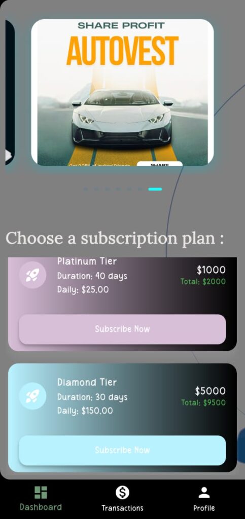 Autovest App is a mobile-based investment application that helps users earn daily returns by investing in carefully curated, high-potential markets—including the automotive sector. The app automates your investments, tracks performance, and credits your profits directly—making it perfect for people who prefer a passive approach to income.
